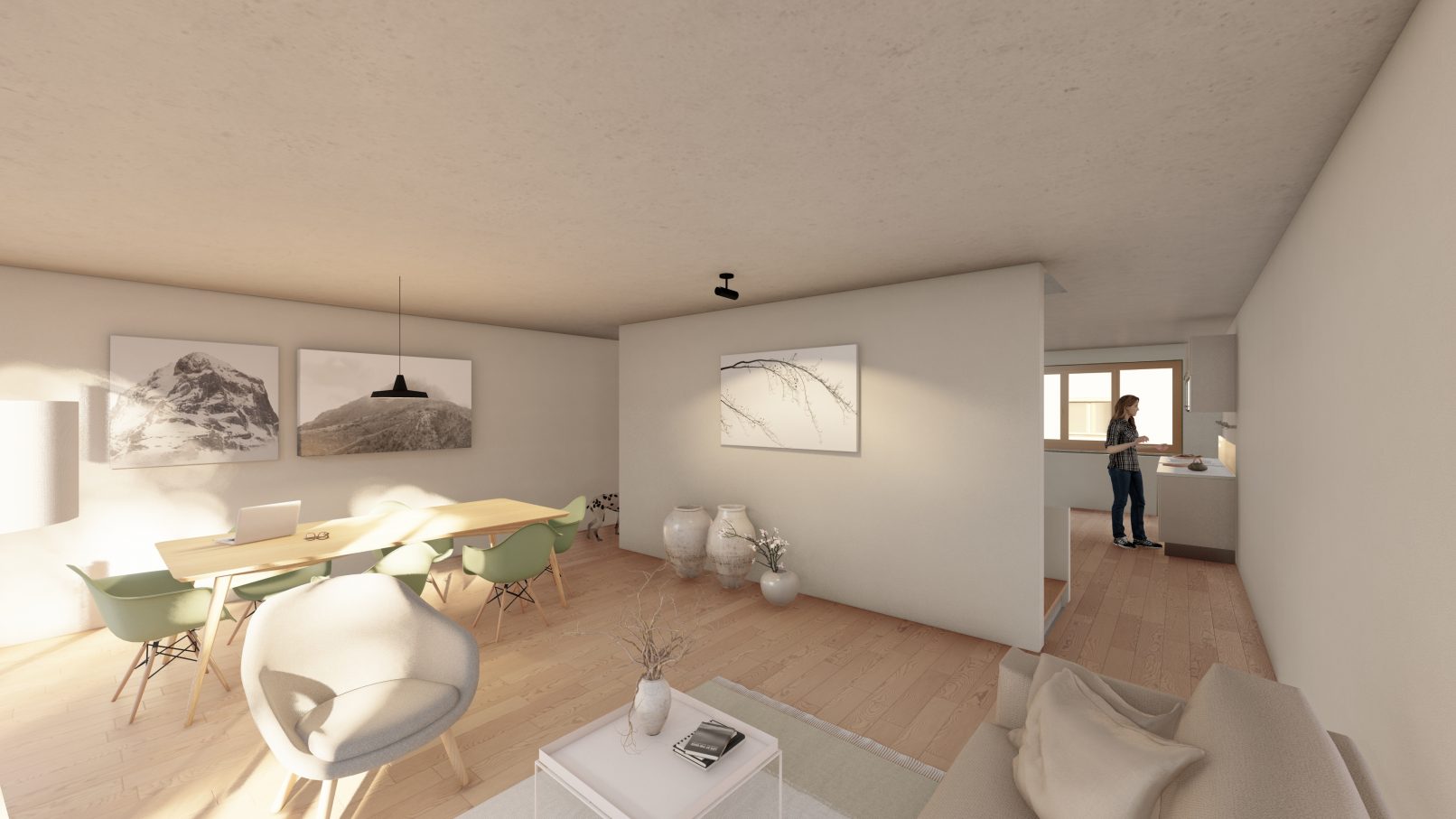 Die Tragstruktur ermöglicht auch Einflussnahme der Bauherren in die Grundrissgestaltung trotz „serieller“ Bauweise.