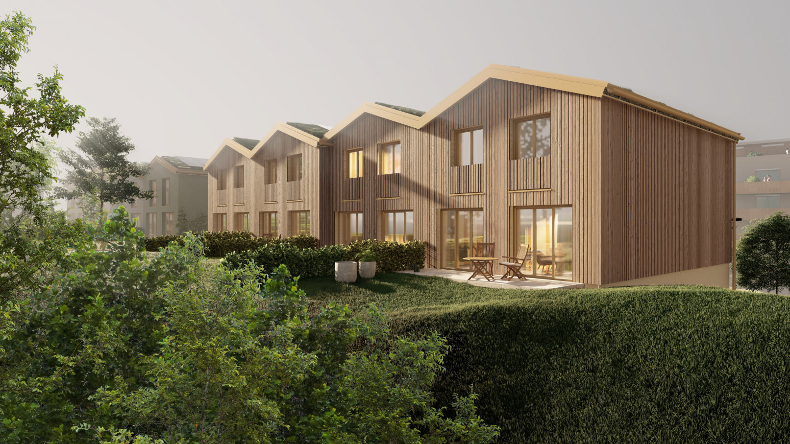 Bei der Entwicklung einer Industriebrache in ein attraktives Wohnquartier entstehen die 13 Reihenhauseinheiten.