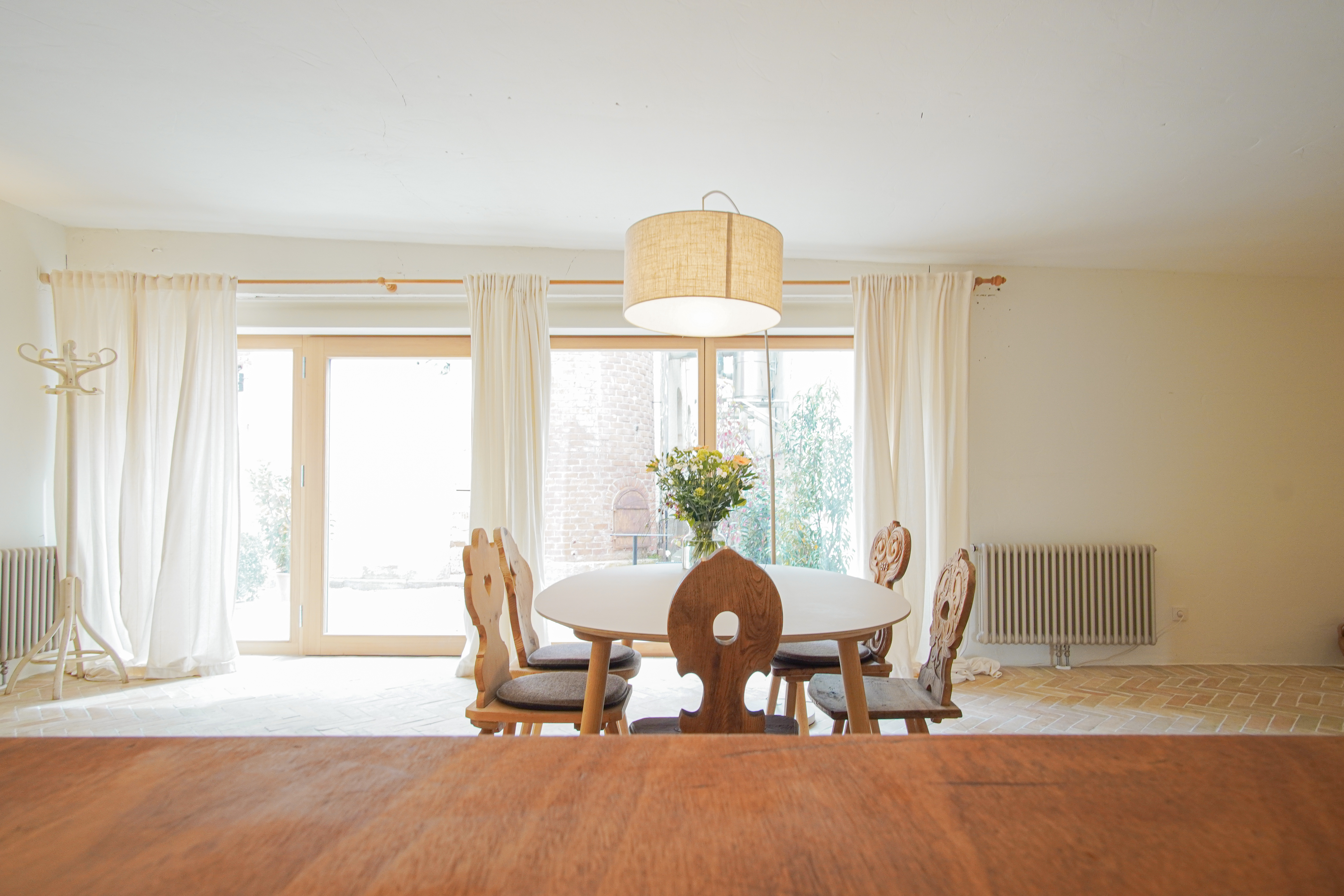 Ein Rückzugsort, der Altes erhält und Neues sensibel ergänzt. Handwerklich geprägte Böden aus Bejmat-Ziegeln, lehmverputzte Wände, ein begrüntes Dach – jedes Detail trägt zu einem nachhaltigen Ganzen bei. Reversible Ein- und Ausbauten, auf ein Minimum reduziert, aus ökologisch wertvollen Materialien, wie Holzständerwände mit Lehmbauplatten und mineralischem Anstrich, lassen alte Risse und Spuren bewusst durchscheinen. Aus ungenutzten Räumen wurde so ein lebendiges Zuhause, das Wärme und Ursprünglichkeit ausstrahlt.